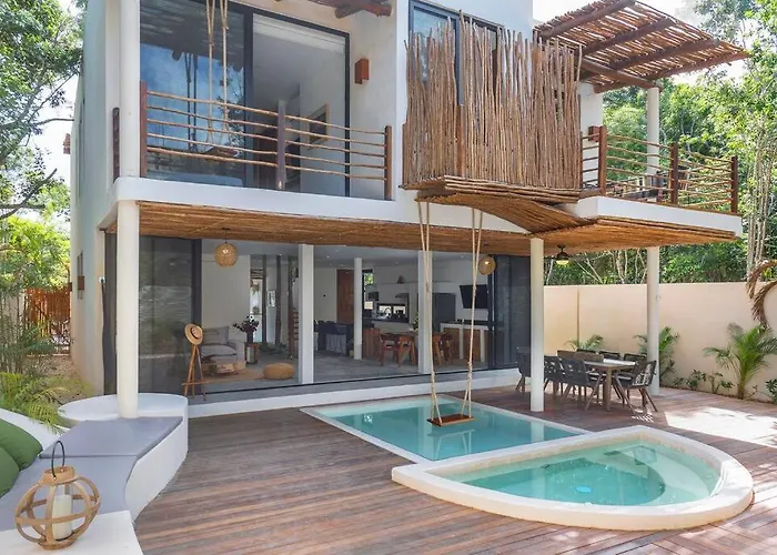 Deze gesitueerde in Tulum Pueblo Twin Villas 8Br, Concierge, Gated ,Jacuzzi, Paddle Court Tulum Pueblo is gelegen in de Zama wijk van de stad en binnen 10 rijden van het Playa Tulum, en biedt gasten een bubbelbad voor een meer ontspannen verblijf.